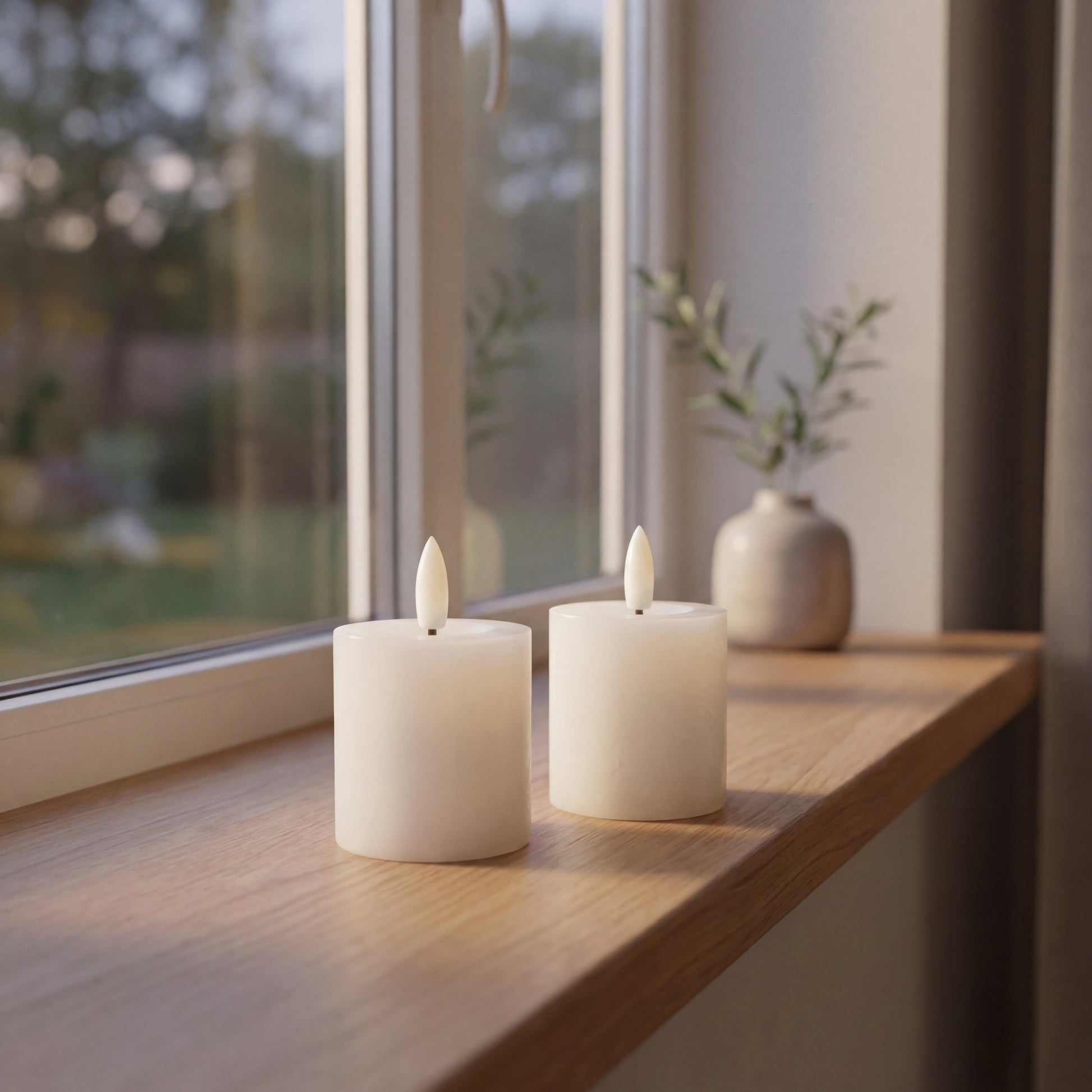 2er-Pack LED-Stumpenkerzen in Weiß mit realistischer 3D-Flamme