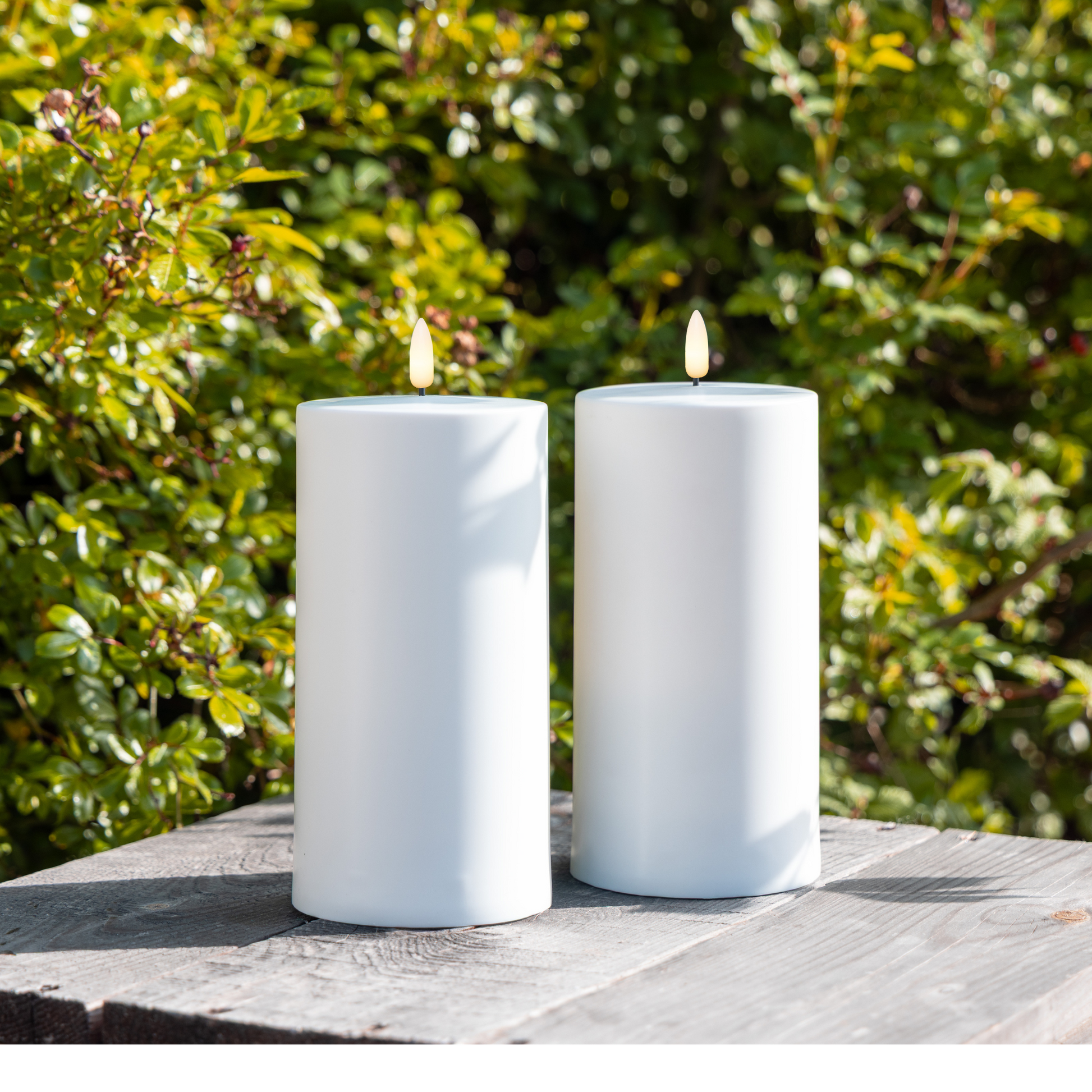 2er-Set – LED Stumpenkerzen für draußen 20 cm inkl. Fernbedienung