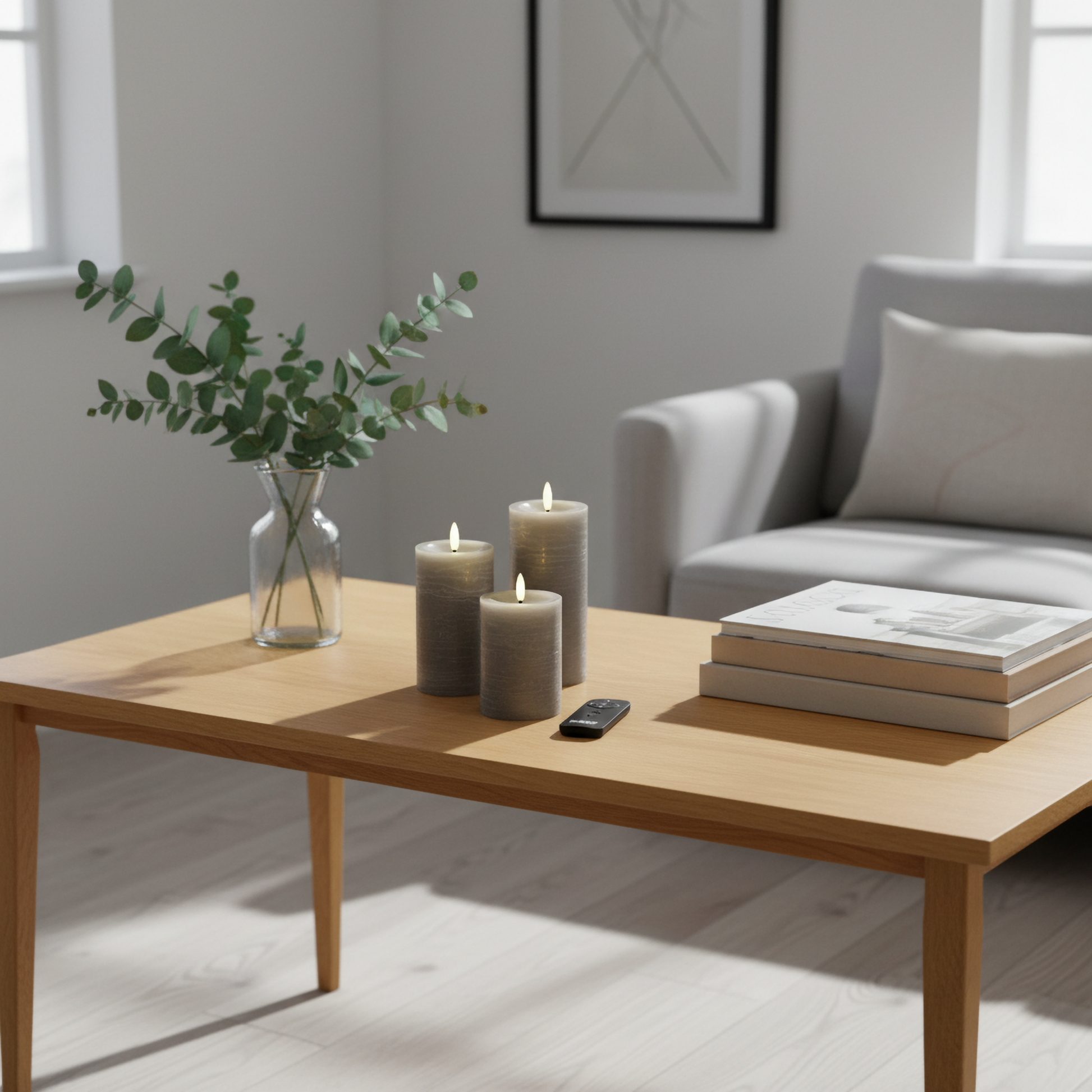 3er-Set LED Stumpenkerzen innen – Grau mit Fernbedienung & realistischer 3D-Flamme