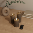 3er-Set LED Stumpenkerzen innen – Mokka mit Fernbedienung & realistischer 3D-Flamme