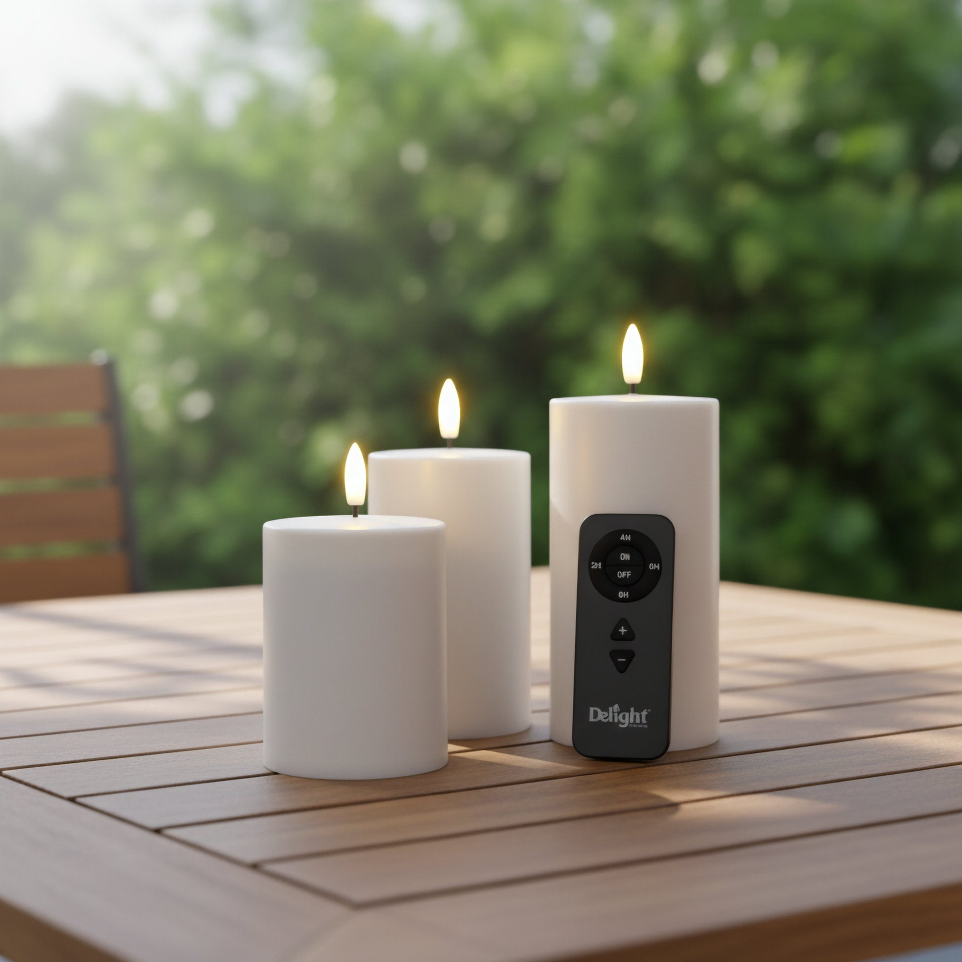 Weiß 3er-Set Deluxe Outdoor LED-Kerzen mit Fernbedienung – wetterfest & realistische Flamme