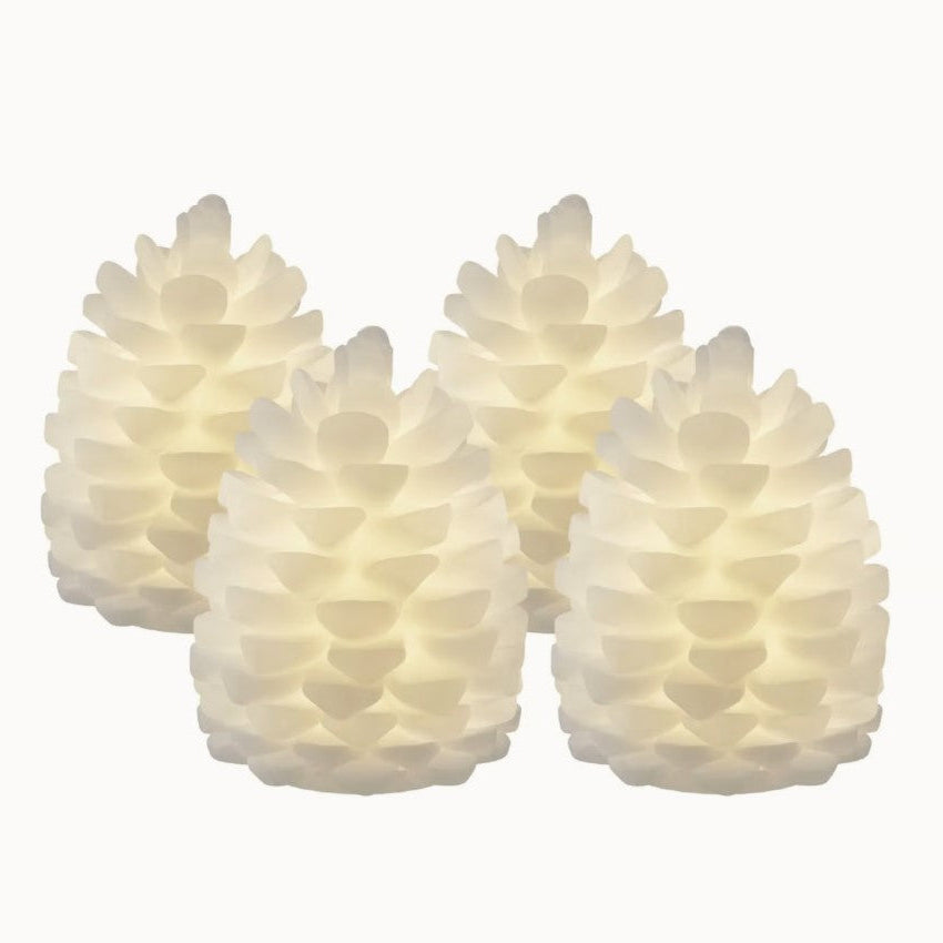 Deluxe Homeart LED Tannenzapfen – 4er-Set Weiß, batteriebetrieben (H 7,5 cm)