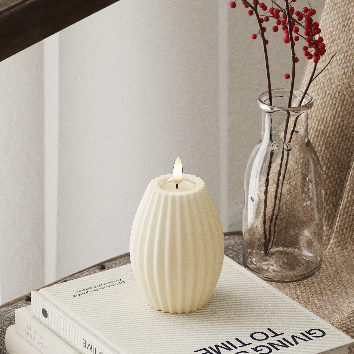 LED Kerze Deluxe Homeart Gerillt D7,5 x 10 cm - Echtwachs - 3D Flamme