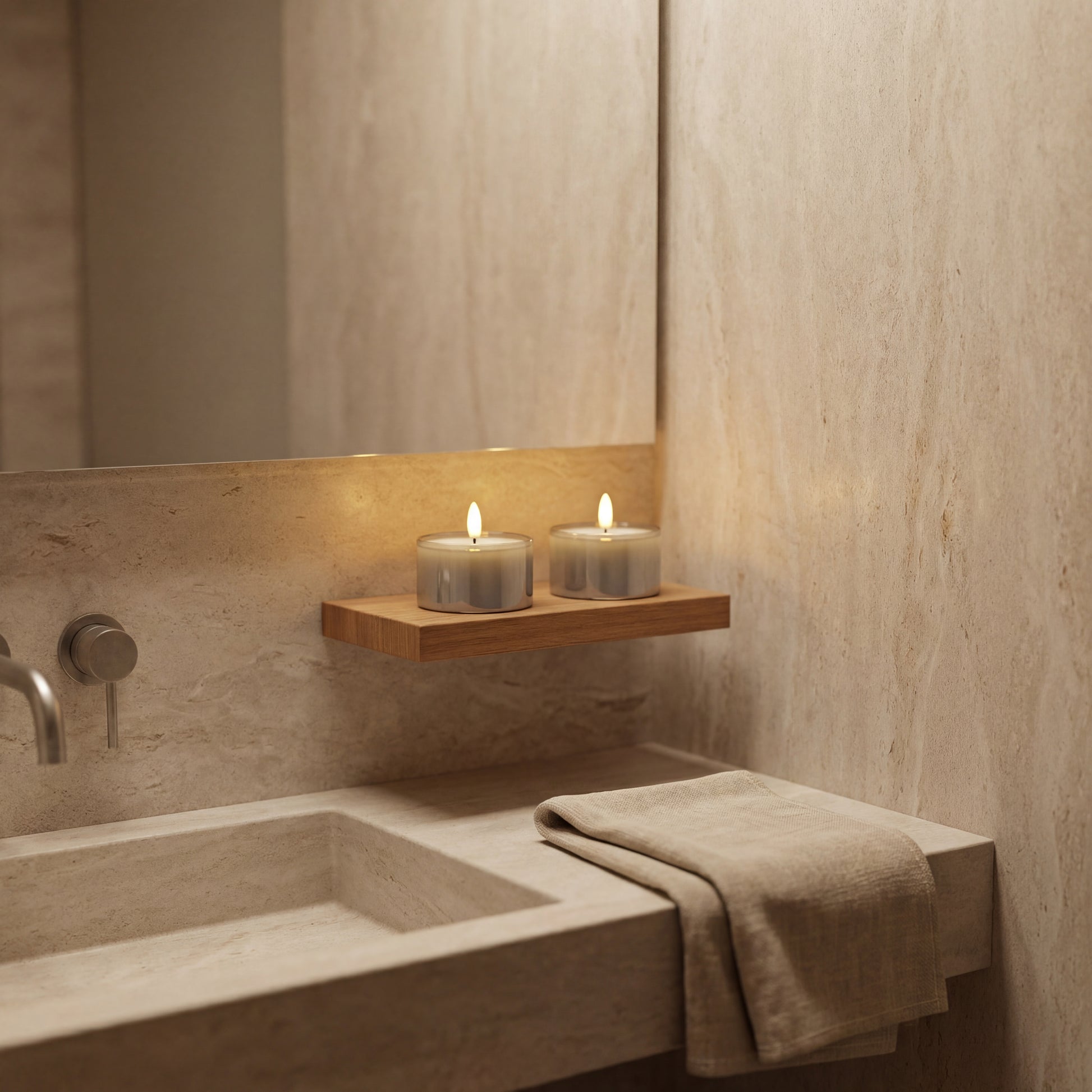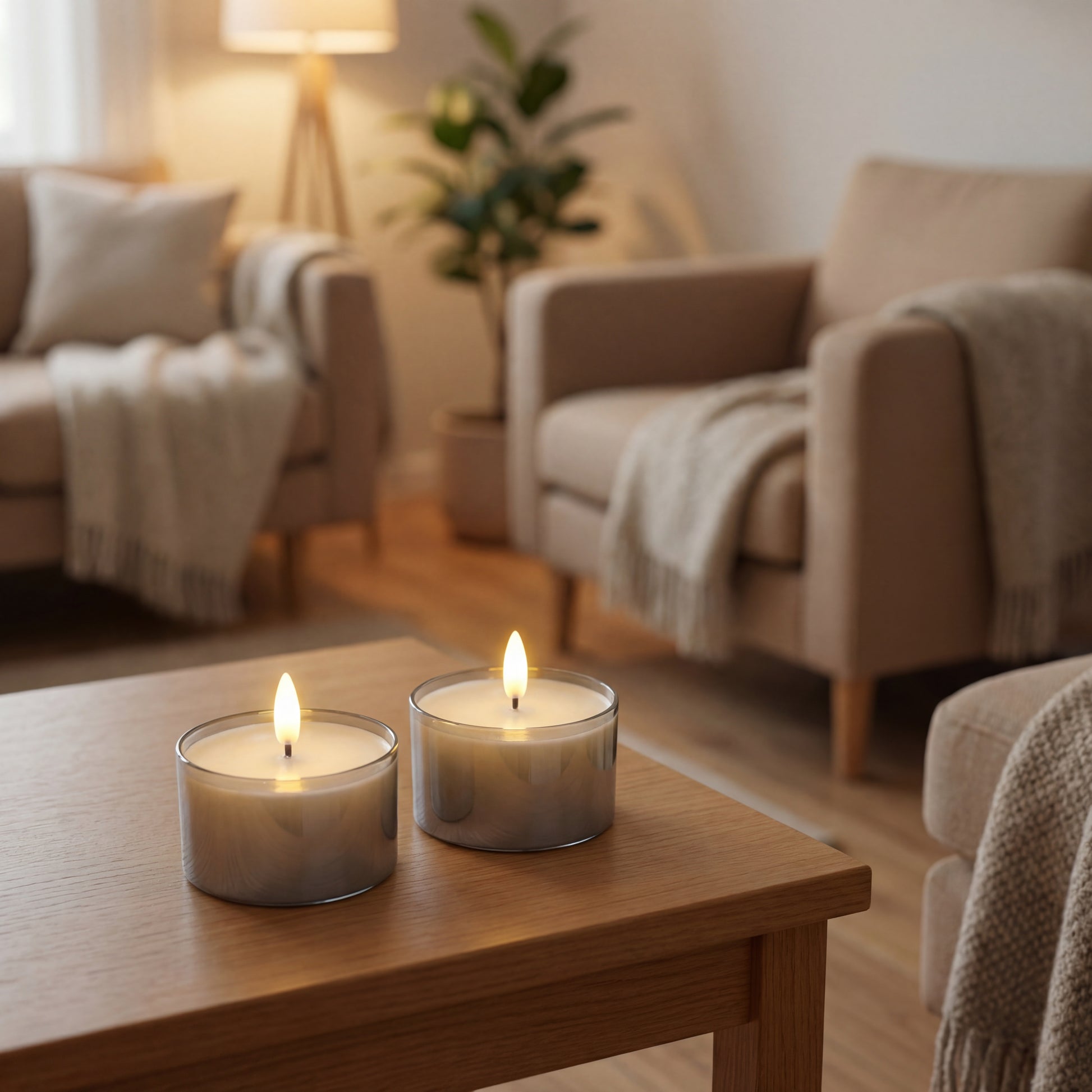 Das Grau-/rauchfarbene Glas verleiht den Lichtern eine elegante und dekorative Optik. Da sie frei im Glas stehen, benötigen sie keinen Kerzenhalter. Perfekt für das Badezimmer, die Fensterbank, das Regal oder als stimmungsvolle Tischdekoration.