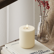 LED Kerze Gerillt D8 x 10 cm - Echtwachs - 3D Flamme