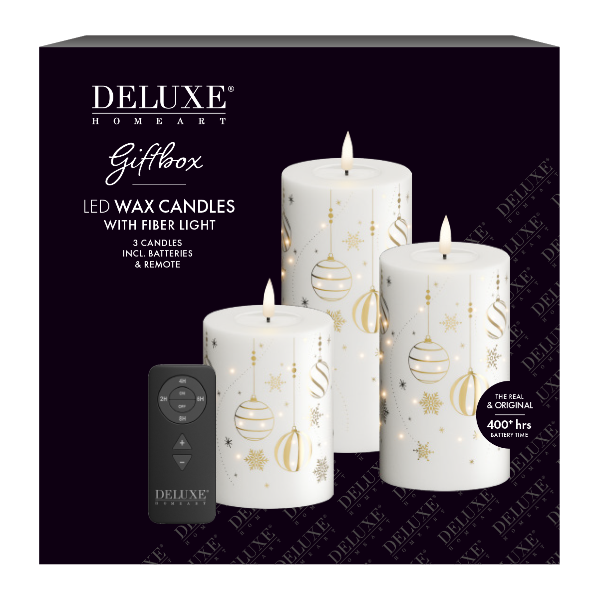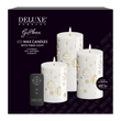 Deluxe Homeart LED Stumpenkerzen – 3er-Set Geschenkbox mit Goldprint inkl. Fernbedienung & Batterien