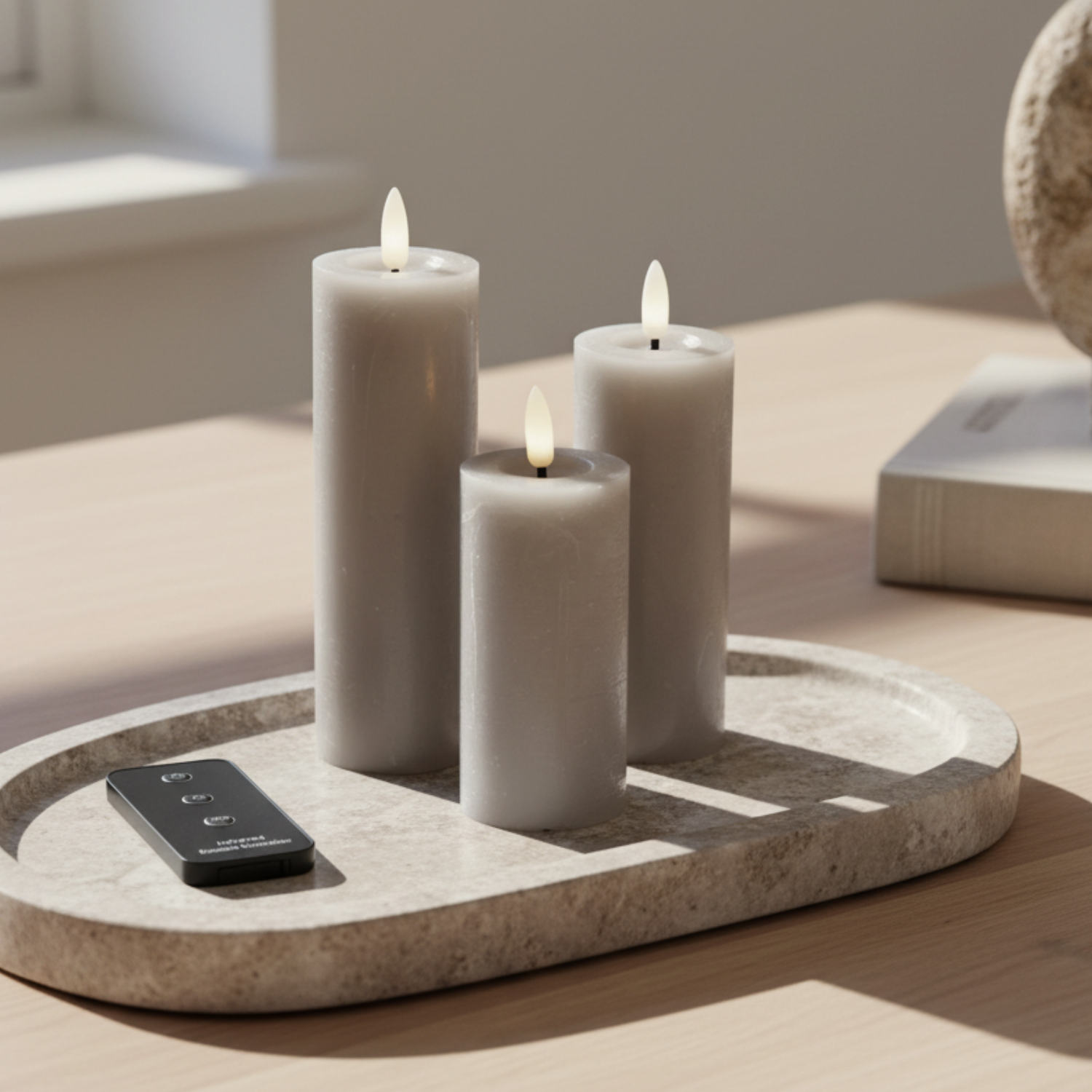 Graues LED-Stumpenkerzen-Set mit 3 Kerzen und Fernbedienung