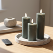 Grünes LED-Stumpenkerzen-Set mit 3 Kerzen und Fernbedienung