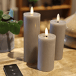 LED-Stumpenkerzen D5 - Set mit 3 Kerzen & Fernbedienung - Sandfarbene