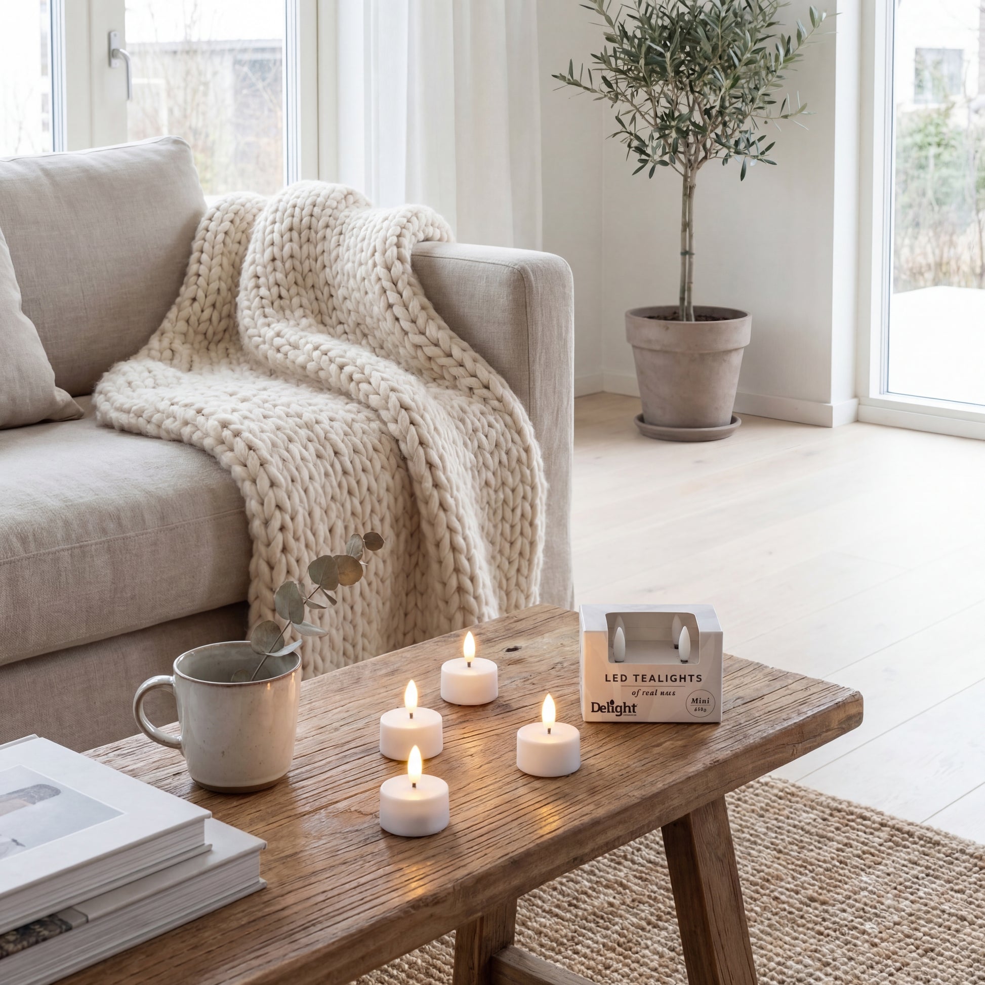Mit Delight by Deluxe Homeart erhalten Sie LED-Kerzen, die klassische Wachsoptik mit moderner Technologie verbinden – sodass Sie gemütliches Licht ganz ohne Rauch, Ruß oder Brandgefahr genießen können.
