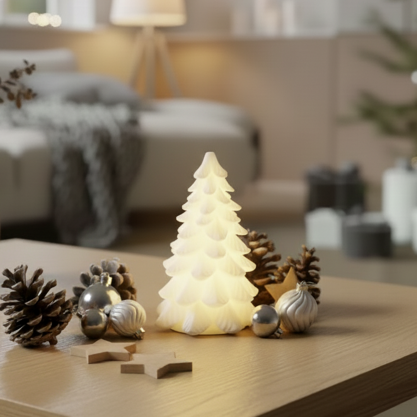 LED Weihnachtsbaum H 16 cm – Stearin – Weiß – Deluxe Homeart