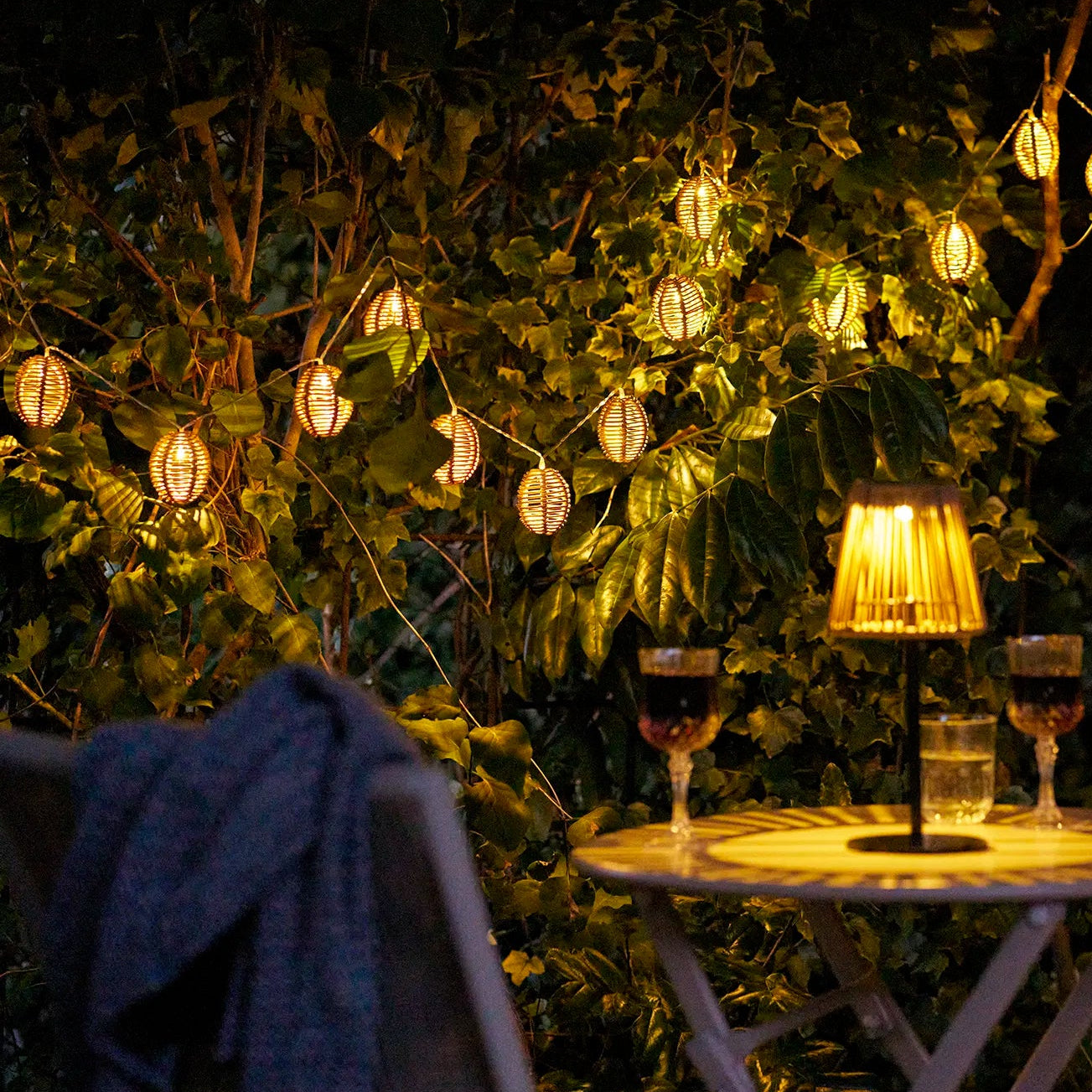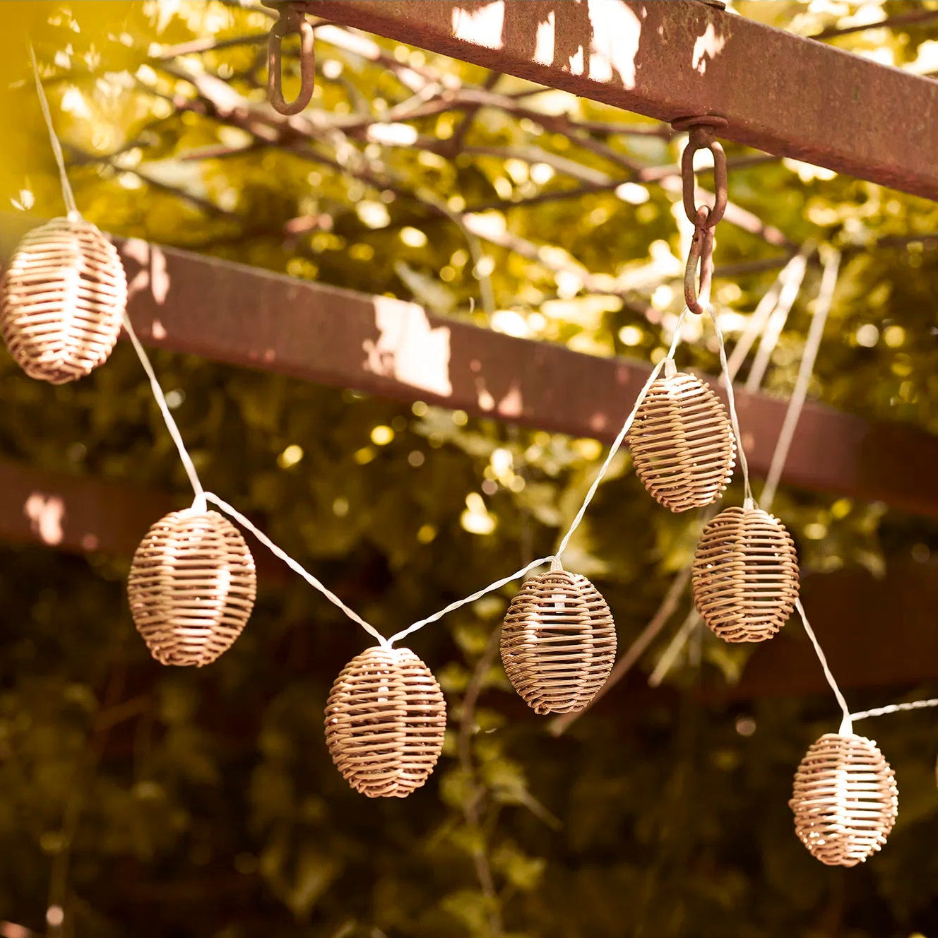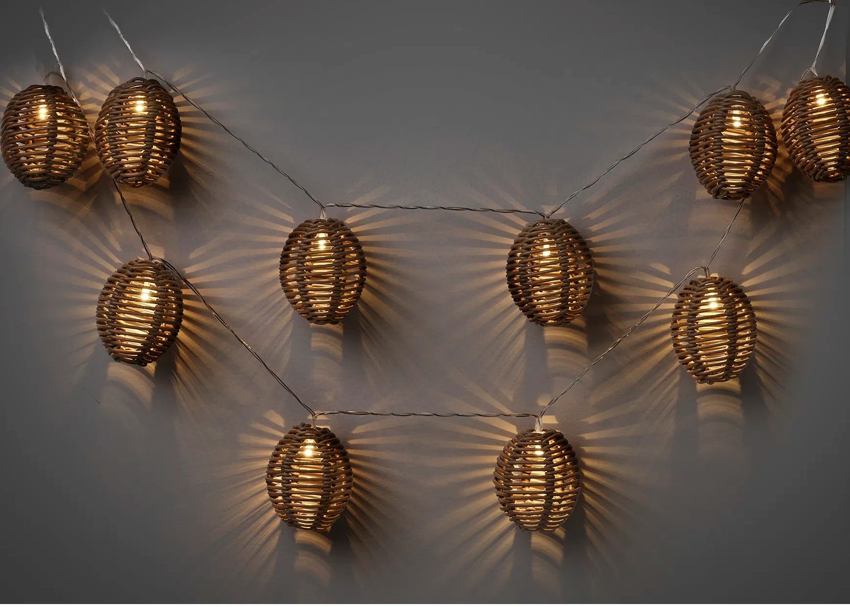 Diese Lichterkette aus Polyrattan ist ein dekoratives Element, das Ihrem Zuhause oder Ihrer Terrasse ein natürliches und stimmungsvolles Ambiente verleiht – perfekt für den Alltag und gemütliche Abende.