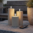 Premium Outdoor 3er-Set Nordic Flame LED-Kerzen inkl. Fernbedienung – Sandfarben