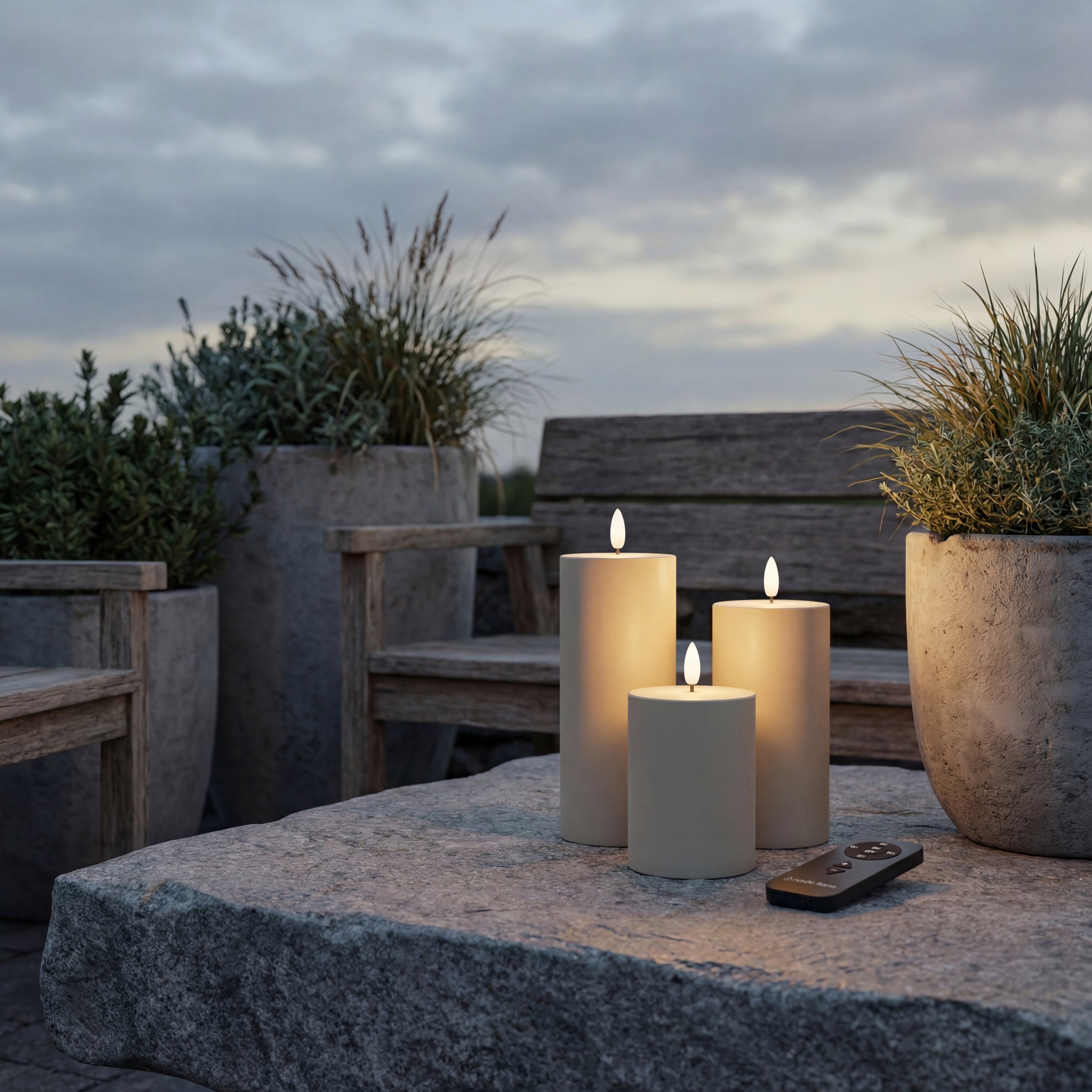 Outdoor Premium LED-Kerzen – Nordic Flame 3er-Set mit Fernbedienung