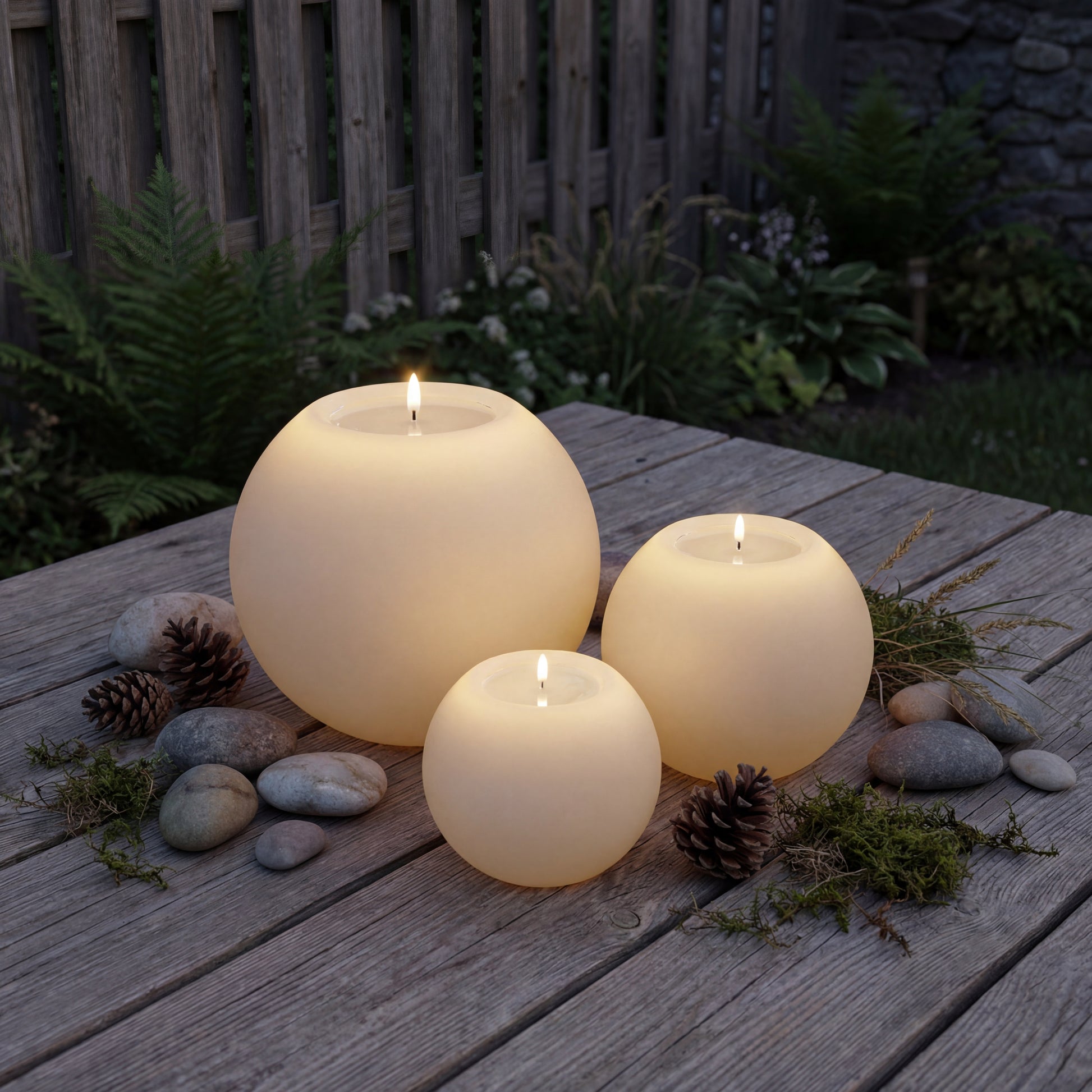 Die Kugeln laden sich automatisch durch Sonnenlicht auf und schalten sich bei Einbruch der Dunkelheit von selbst ein – ganz ohne Kabel oder Aufwand. Das sanfte Flammenlicht sorgt das ganze Jahr über für eine ruhige und gemütliche Atmosphäre.