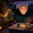Die Laterne ist leicht und kann einfach in Bäumen, an Pergolen oder unter einer Überdachung aufgehängt werden.