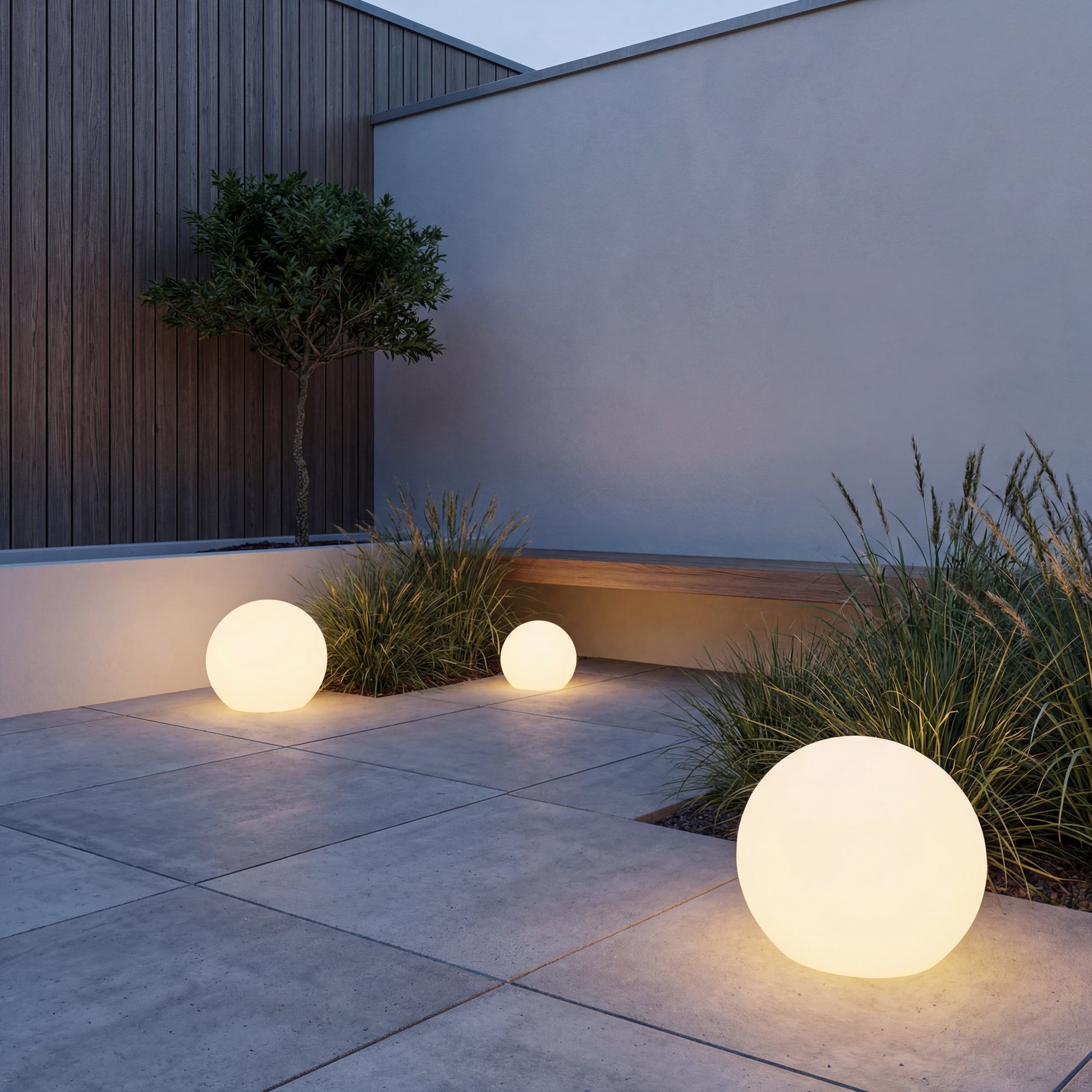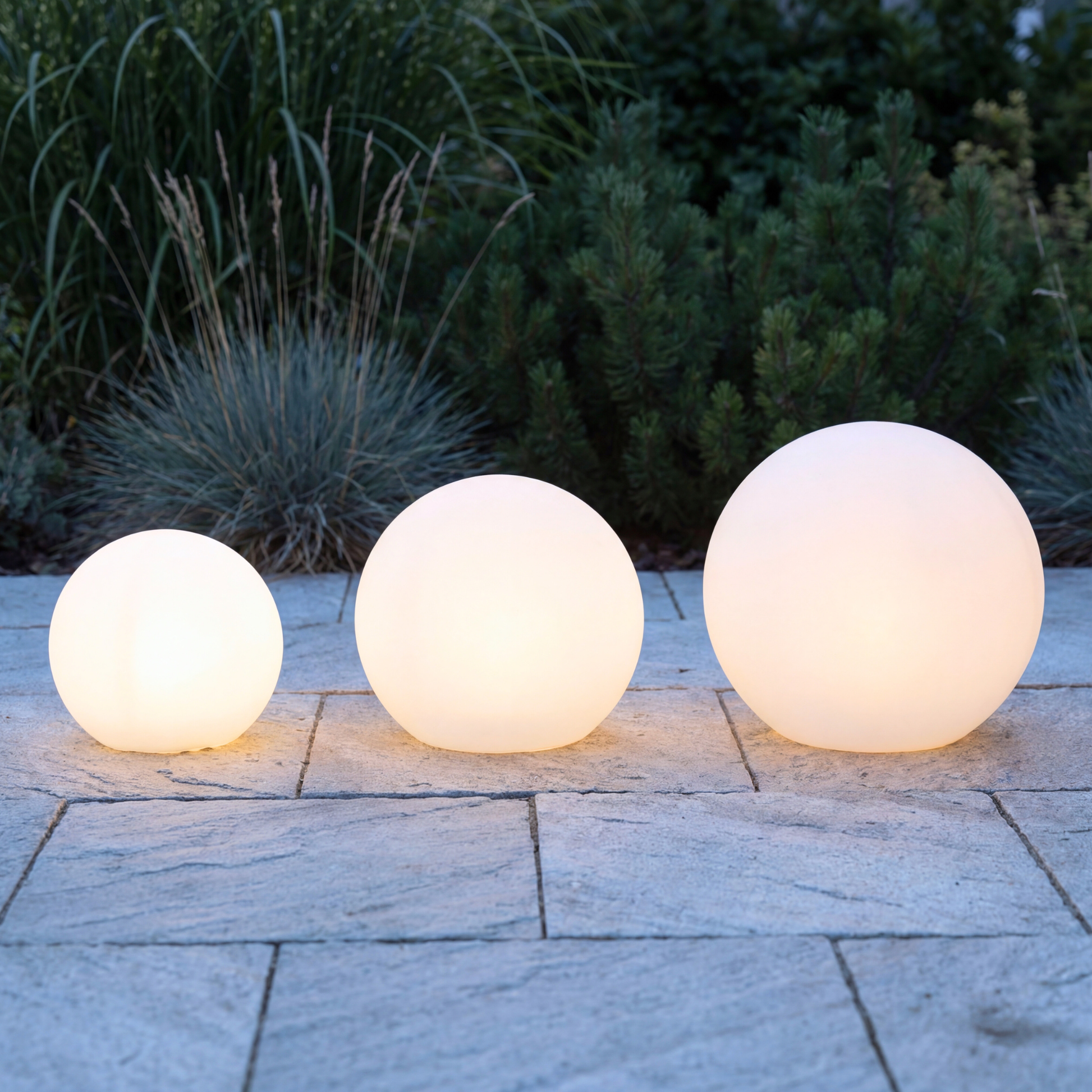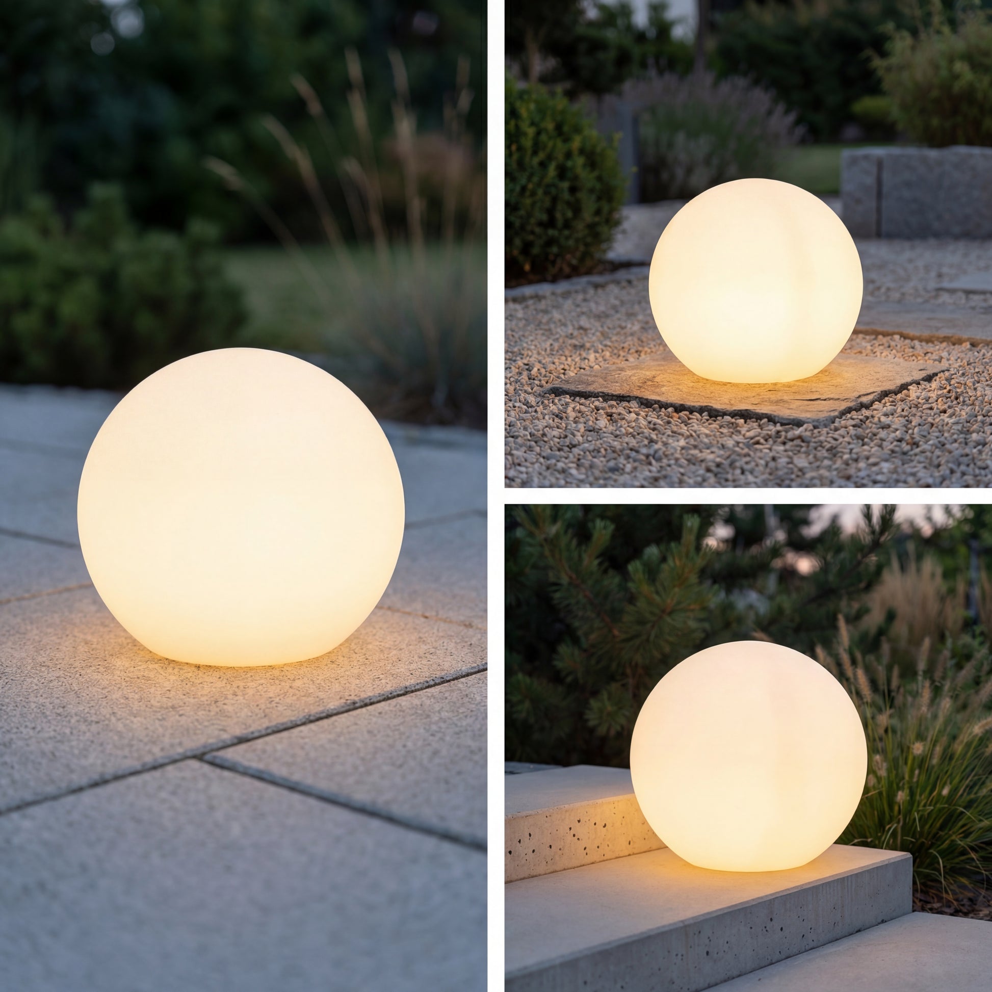 Die Leuchtkugeln sind in drei verschiedenen Größen erhältlich und können einzeln oder kombiniert für eine besonders schöne, dynamische Beleuchtung eingesetzt werden:
