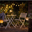 Die integrierte Solar LED Lichtquelle wird tagsüber automatisch durch Sonnenenergie aufgeladen. Am Abend schaltet sich die Lampe ein und sorgt für ein weiches und angenehmes Licht, das Wege und Bereiche im Garten hervorhebt.